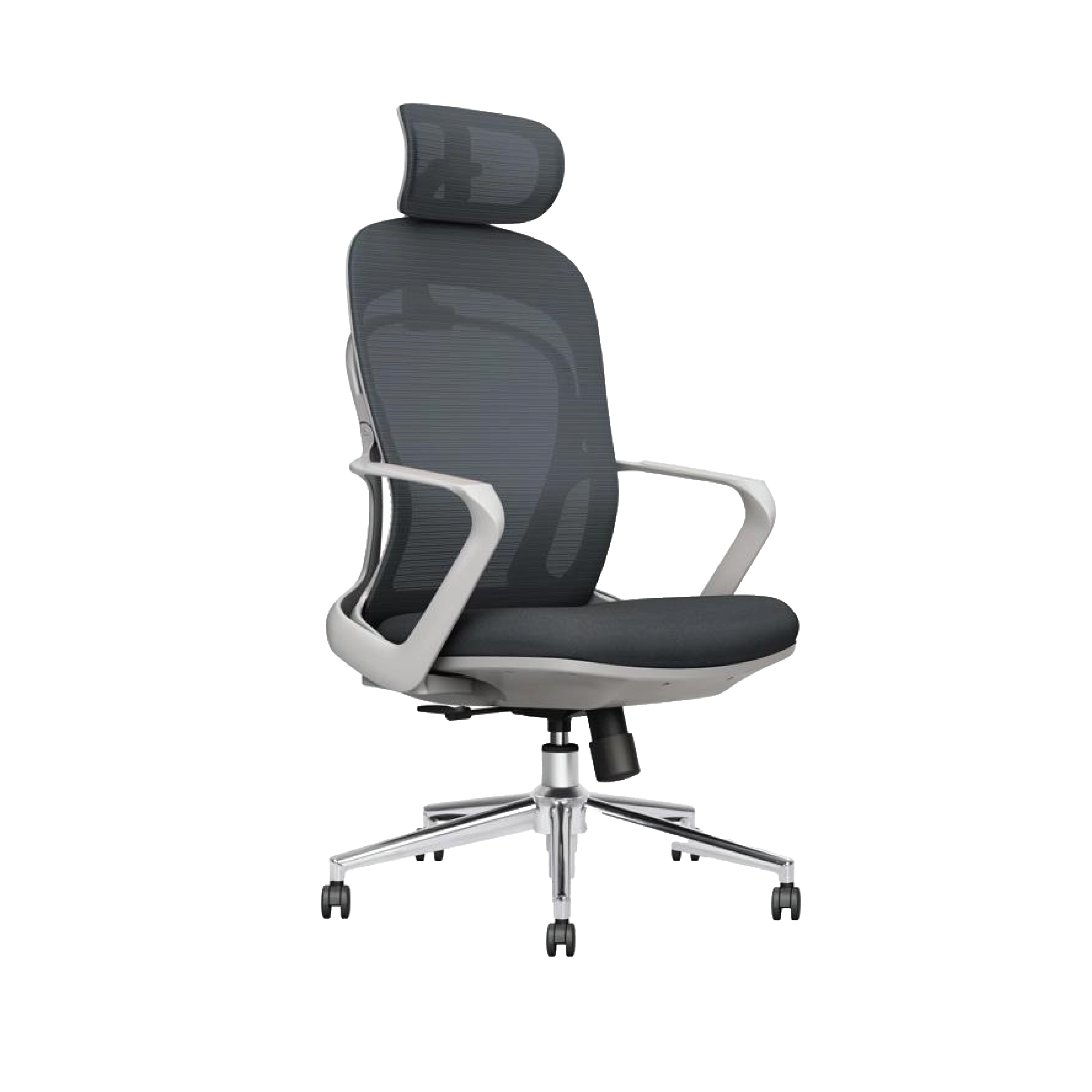 High-back mesh design; Lumbar support; Adjustable height & tilt; Durable base; Castors; Armrests