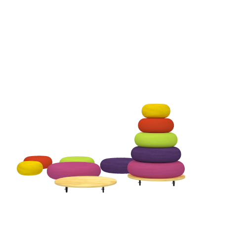 Simple mobile trolley for piling up large seat cushions and transporting them across learning zones.