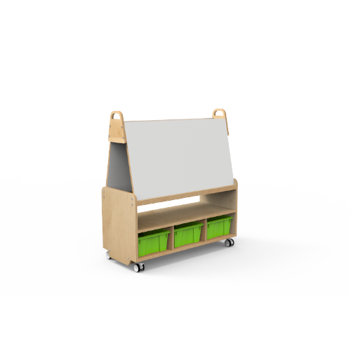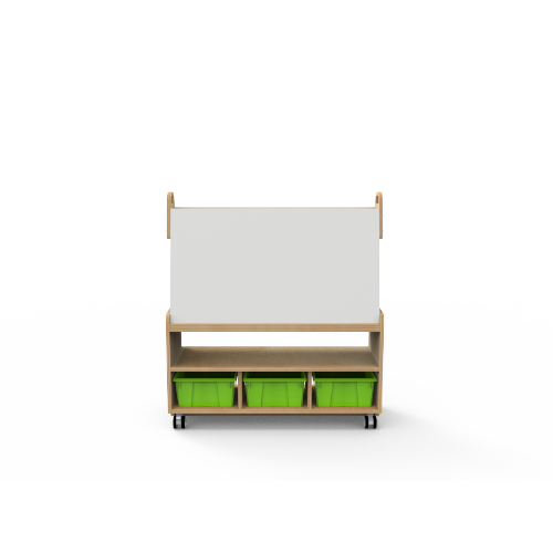 Multi-purpose teacher desk with integrated storage and planning space.